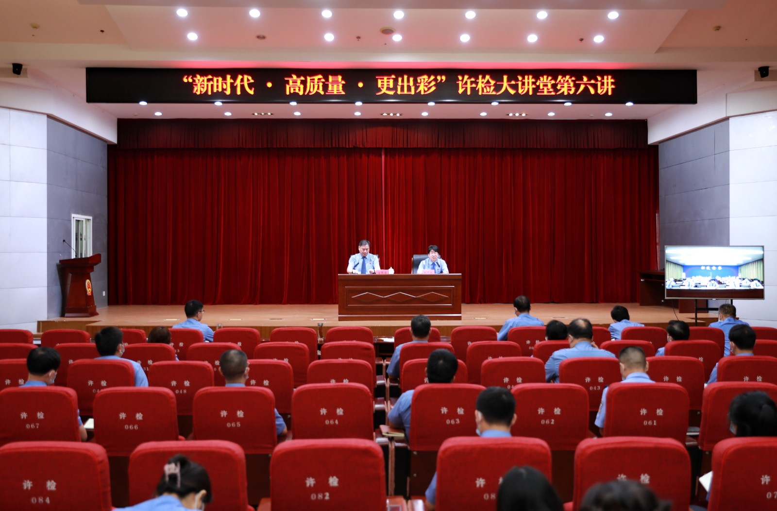 7月22日上午,市检察院以视频会议形式举办“新时代·高质量·更出彩”大讲堂第六讲,三级高级检察官任国强以“谈领导能力的提升”为题,为全市两级院检察干警授课。市检察院党组书记、检察长赵艺林主持讲座。