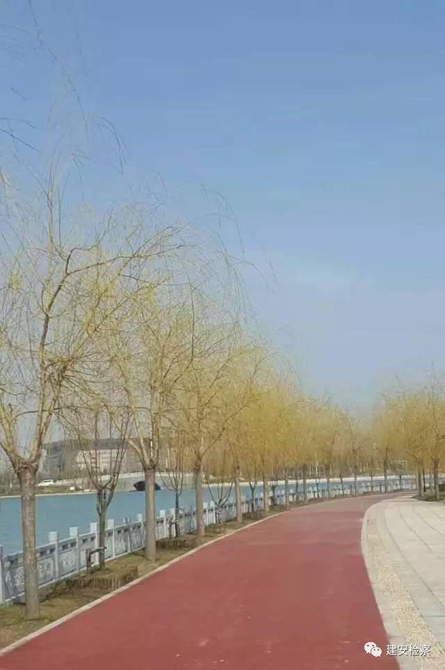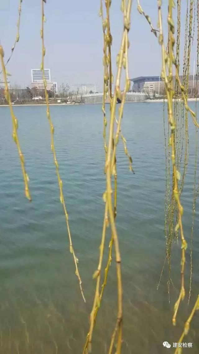 半程折返。回去的路上,湖水南畔,褐色道路两旁,排排垂柳相对而立,恰似一道绿色长廊。放眼望去,也许是初春,也许是因为前几天天气转凉,柳树才刚刚突出嫩芽,她所孕育的春天的希望,全都饱含在机体之内,那种涌动,那种希望,那种力量,一瞬间扑入我的眼帘,也扩张着我的心脏,禁不住对同事说,我好像能感觉到那种新生的力量。