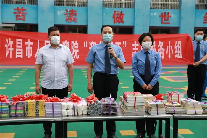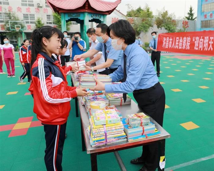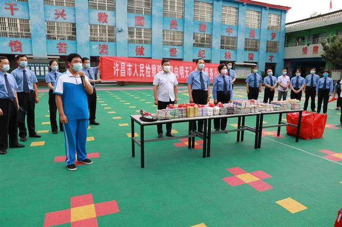 5月29日下午,在“六一”儿童节即将到来之际,市检察院党组成员、政治部主任王伟带领“迎向明天”志愿服务小组来到鄢陵县张桥镇河岗学校,开展志愿服务活动,向留守儿童捐赠爱心物品,传递检察温情。